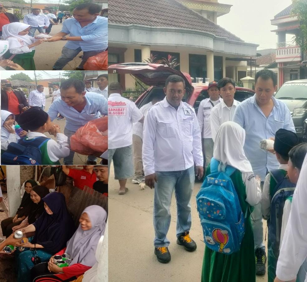 TANGERANGNEWS.CO.ID, Tangerang | Haji Muhammad Sobri bersama team relawan kembali melakukan berbagi bersama dengan menyapa, berdiskusi dan membagikan susu dan nasi kepada anak sekolah serta ibu hamil Aksi Rabu kali ini, dilaksanakan di dua tempat berbeda yang berada di Desa Kadu Jaya, Kecamatan Curug, Kabupaten Tangerang, Banten. Selasa, (28/11/2023).