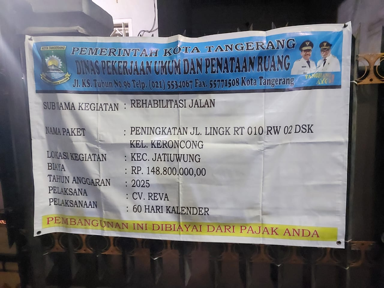 TANGERANGNEWS.CO.ID, Kota Tangerang | Proyek Hotmix yang dilaksanakan oleh CV. Reva beralamat di Jalan Kroncong Permai RT 010/02, Kelurahan Kroncong, Kecamatan Jatiuwung, Kota Tangerang, tidak sesuai dengan spesifikasi kualitas maupun kuantitas, serta ada bagian matrial yang tidak digunakan. Sabtu, 11/10/2025.